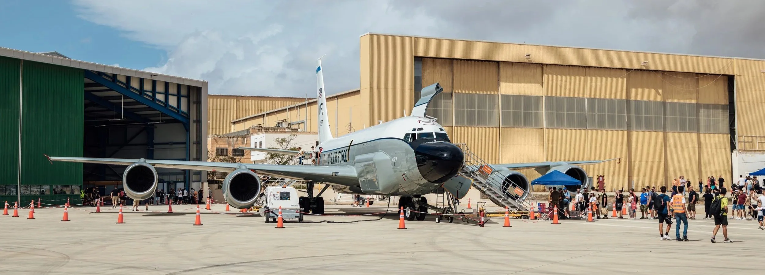 Tous les deux ans sur l’île de Malte se déroule le “Malta Air show”, meeting un peu particulier car divisé en plusieurs zones distinctes. Il regroupe quelques machines peu communes comme ce TC135, version d’entraînement du Rivet Joint :